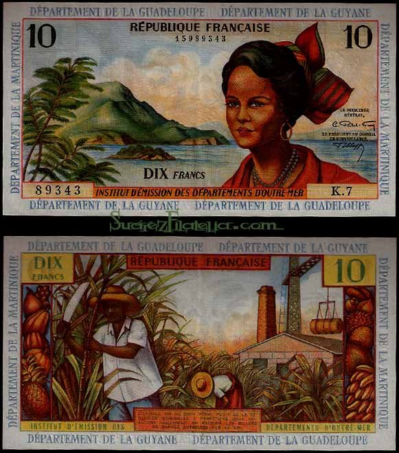 Billete Antillas Francesas 10 Francos EBC. 1964