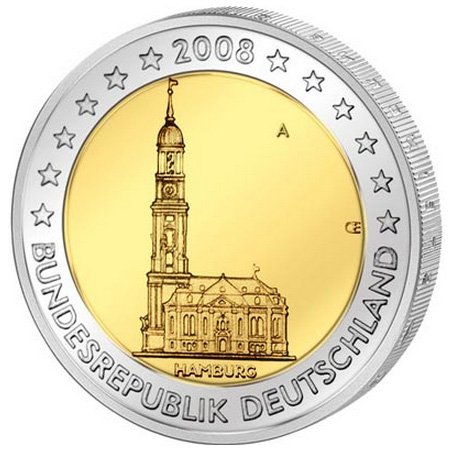 Moneda 2 euros Alemania 2008 Hamburgo. Juego (A, D, F, G, J)