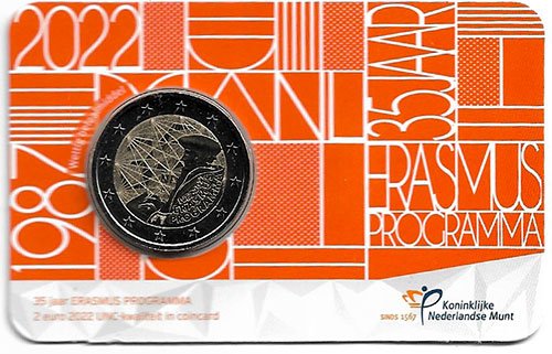 Moneda 2 euros de Holanda 2022. Programa Erasmus. COINCARD